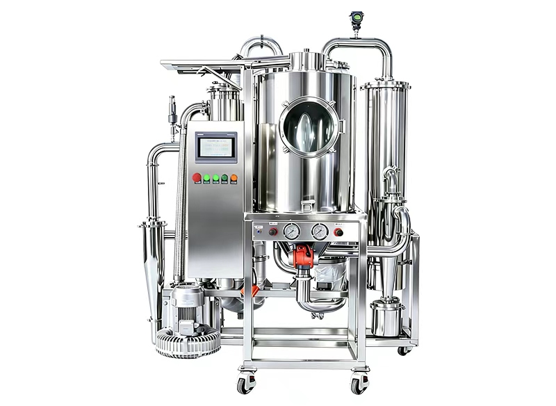FY-BPG3L闭路循环喷雾干燥机解决了小型实验室款处理量不够,大机型占地面积大的问题,这款机器实现了两者兼容,这是一款针对有机溶剂,有毒或者有害的物料进行喷雾干燥的机型,物料中含有的有机溶剂浓度过高,易燃易爆或者物料宜氧化的的情况下,机器采用氮气替代干燥雾化系统的空气,氮气经过过滤装置,多级冷凝装置后循环密闭使用,从而保证实验过程中的安全性,也能保证样品不被氧化,完成干燥收集过程。